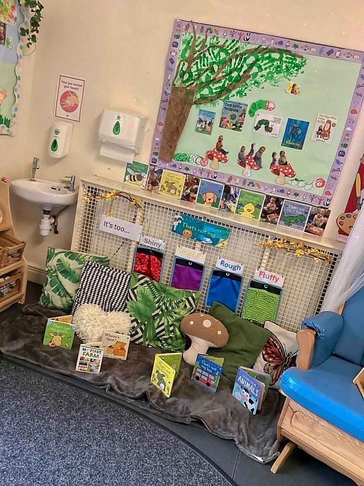 Tadpoles & Caterpillars are our baby rooms from 3 months old. Babies engage in playful interactions by ensuring a calm relaxed, happy environment, where babies receive quality individual care. We respond quickly to babies needs and they are able to sleep whenever they need to in a warm, comfortable cot, rocker or pod, whichever is preferred. Mats, cushions and soft furnishings are included within the room.